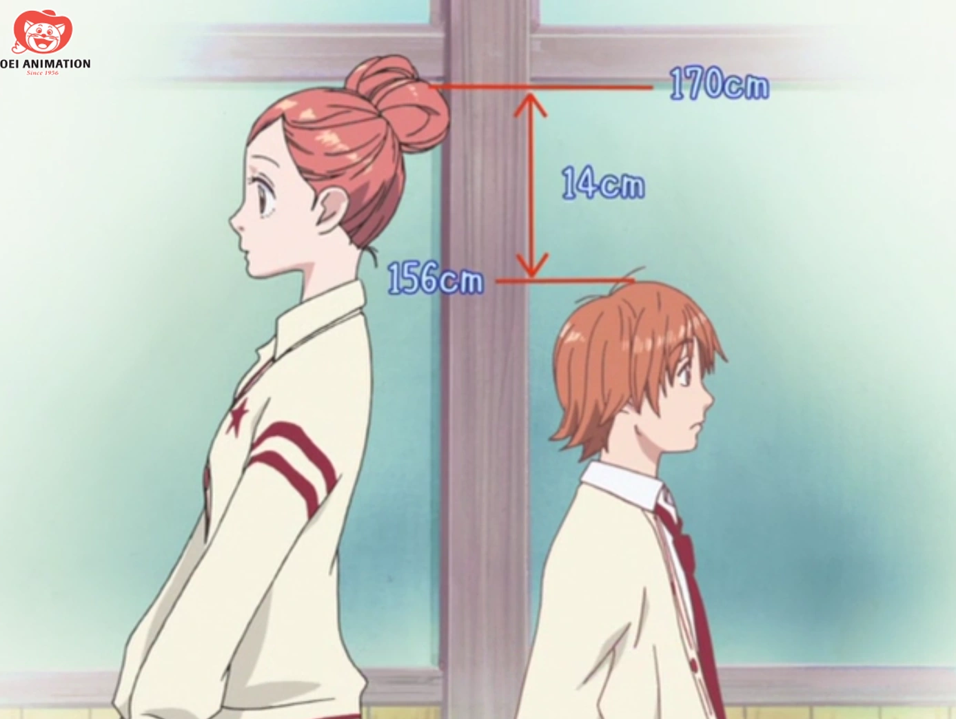 Imagen oficial de las estaturas de Otani y Risa (Crunchyroll)